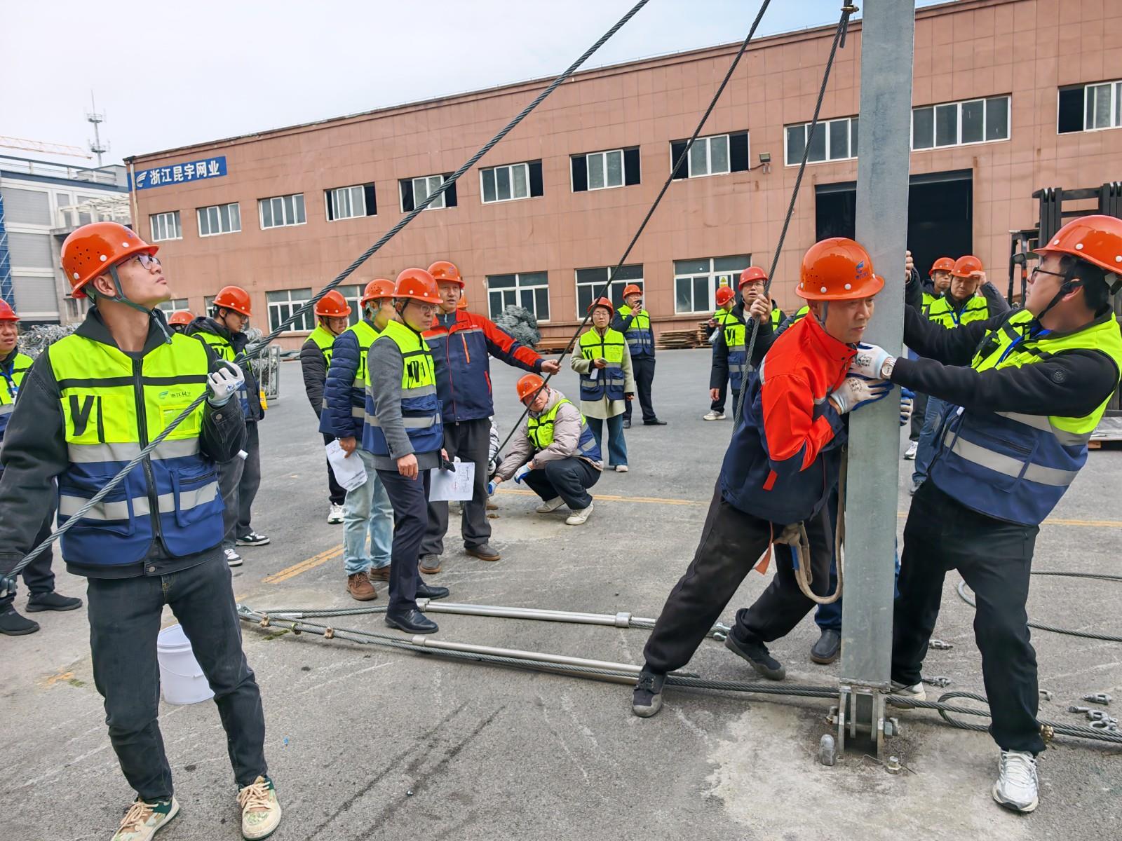 公司组织骨干人员在德清厂区“被动防护网演示场”进行了一场坡面被动防护网拆解安装演练